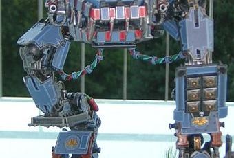 He visto esto por la red y no he podido resistirme.Es un Titan de exploración Warhound creado a base de piezas de plástico de diferentes modelos de vehículos(Sobre todo tanques de marines leales,por lo que se puede ver...aunque hay alguna que otra de Caos por ahí metida...)pintado con los colores de los Lobos Espaciales!.Es una verdadera pasada como han conseguido ir encajando las piezas de diferentes modelos hasta que al final ha quedado la forma de un Warhound.