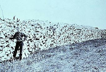 Una de las estrategias del gobierno de EEUU para eliminar a los indios fue el exterminio de unos 50 millones de bisontes. En la foto de 1890, cientos de miles de toneladas de huesos de bisonte