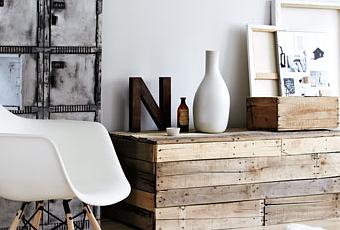 Sin duda una de las estancias mas hermosas. Esa taquilla envejecida, mezclada con la delicadeza de una butaca Eames, y que contrasta con ese modulo improvisado de tablones. Quien no vio Bricomania?? Sin miedo a que queden listones diferentes, el resultado con esta mezcla es precioso, o no?