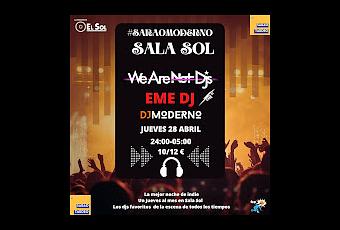 Estos djs nos presentarán la esencia clubbing con estilos como el indie y alguna que otra sorpresa, nos referimos a We are not dj's junto a Dj Moderno y a Eme Dj que harán las delicias de la sala con la propuesta de festivales y mucho más desde el escenario de El Sol el 28/4.