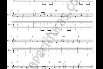 Tablatura del punteo de guitarra en Fa del villancico popular de Navidad We Wish you a Merry Christmas
