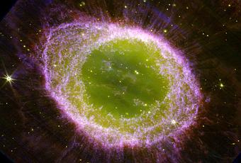 Para muchas personas aficionadas al cielo, la Nebulosa del Anillo es un objeto conocido, situado en la constelación de Lyra y visible durante todo el verano. Se trata de una nebulosa planetaria. Estos objetos son restos de estrellas moribundas que han arrojado gran parte de su masa al final de sus vidas. Las imágenes captadas por el telescopio espacial James Webb (JWST, por sus siglas en inglés) ofrecen una oportunidad sin precedentes para estudiar y comprender los complejos procesos que dieron forma a esta obra maestra cósmica.