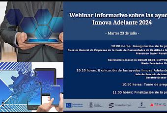 El próximo martes, 23 de julio de 2024 a las 10:00 horas se realizará este Webinar a través de videoconferencia. El Programa de apoyo a la innovación empresarial Innova-Adelante en Castilla-La Mancha, es un programa de ayudas ya consolidado en la región que tiene por finalidad reforzar el tejido empresarial innovador, impulsando la competitividad de las empresas, enmarcado en los objetivos y medidas establecidas en el eje 3 “Innova y digitaliza” del Plan estratégico de acompañamiento empresarial de Castilla-La Mancha (Plan Adelante 2024-2027).