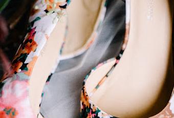 Nosotras aconsejamos que si los zapatos llevan flores añadidas se lleven en vestidos por encima del tobillo, o vestidos cortos, porque las flores superpuestas se enredarán seguro con el largo del vestido.
