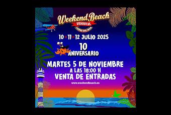 Empezamos a conocer los primeros datos del que será la décima edición del Weekend Beach Festival previsto para julio.Weekend Beach Festival anuncia las fechas de su décimo aniversario para 2025 donde se podrá vivir una edición con sorpresas.