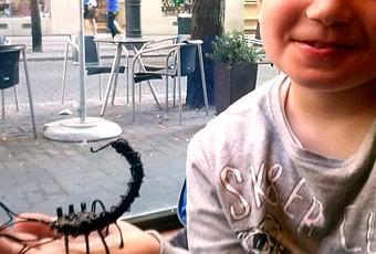 La semana pasada estuvimos en Valencia, y callejeando llegamos al carrer del Micalet, donde habitualmente hay artistas, estatuas humanas y otros personajes ganándose la vida. Pues uno de ellos era el mismo chico de la hormiga que encontramos en Benicassim, y cangrejito no pudo resistirse a su nuevo amigo.
