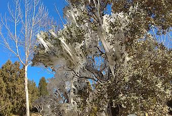 A pesar de que no encontramos nieve, aunque se podía ver en los picos de montañas a lo lejos, si que pudimos ver y tocar otras formas heladas, como por ejemplo el hielo que colgaba de este árbol, de bancos, farolas, sillas y cualquier objeto que se hubiese quedado a la intemperie durante la noche.