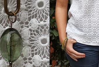 Las combiné con jeans básicos y zapatos ingles en color nude a juego con el bolso sobre de tachuelas. Como complementos opte por reloj de moustache, collar de bolas y aros y pulseras en verde de hilo y de perlas con cruz en verde.