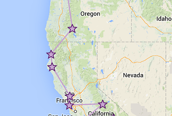 ...haciendo paradas en: Seattle | Portland | Crater Lake National Park | Redwoods National Park | Humboldt Redwoods State Park | Napa Valley | San Francisco | Yosemite National Park | Big Sur (Pfeiffer State Park) | Kings Canyon National Park | Sequoia National Park | San Luis Obispo | Malibu | Los Angeles | San Diego
