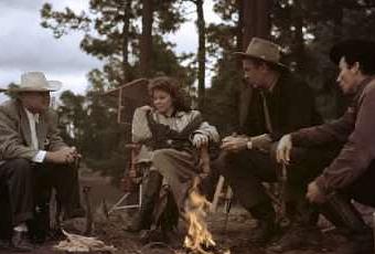Tanto en este pasaje como en el capítulo central, la llegada a la mina y el hallazgo del marido, el factor dramático predominante consiste en la rivalidad masculina por la mujer, y también en la utilización por parte de ella de todas las armas femeninas a su alcance con tal de conseguir sus fines; si bien no supera nunca los límites de la seducción física, sí apela a su fragilidad, a su soledad y a su necesidad de compañía para conseguir que los cuatro hombres que la acompañan la sigan en sus propósitos. A este puzle hay que añadir al marido, lesionado en una pierna y que, postrado en la cama, vomitará salvajes comentarios sobre la naturaleza y la reputación de su esposa. En esta parte, Hathaway, en la línea de John Ford, caracteriza como nadie la creciente amenaza apache: el hallazgo de una pluma de guerra entre las rocas por Hooker; las lejanas señales de humo; las siluetas y los sonidos adivinados en la distancia. Igual que en el primer tramo de la película, el magnífico entorno, en este caso un pueblo sepultado por una erupción volcánica que ha dejado únicamente a la vista el campanario de la antigua iglesia española, sirve a Hathaway para contrastar la soledad de los personajes, su insignificancia, su pequeñez como prisioneros de la cabaña y el cobertizo que suponen su única protección frente a la amenaza india. El camino de vuelta inserta la película más claramente en el western. El grupo abandona la mina y el pueblo perseguido por los apaches, que van acabando uno a uno con sus miembros (Hathaway filma dramática, bellamente el sacrificio de algunos de los aventureros), hasta el decisivo, espectacular y resolutorio episodio, de nuevo en la cornisa, con el enfrentamiento final, haciéndose fuertes en las rocas, de Hooker y Fiske tiroteando a los apaches. La caracterización de éstos es quizá lo más llamativo del film en cuanto a lo que puede discutirse o cuestionarse: uniformados, todos con los pantalones del mismo color, con los mismos adornos, el mismo corte de pelo, rapado y con cresta, no dan el perfil tradicionalmente asociado a los apaches de las películas (cabellos largos, vestimentas que mezclan la tradición india y las ropas de los blancos, nombres cristianos…), sino que parecen más bien iroqueses, mohawks o hurones del noreste de Estados Unidos.