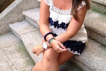 El look que os enseño hoy es un vestido en color blanco con detalle en azul marino. Nada mas verlo me encantó y me lo traje a casa. Lo combiné con sandalias en azul marino y mini bolso de Carolina Herrera, donde aunque el tamaño sea mini cabe de todo!