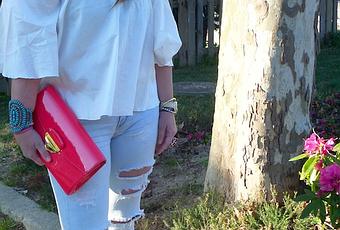 A mi me apetecía muchísimo poder lucir ya esta blusa que me encantó desde el minuto 1 por su carácter romántico!La combiné con ripped jeans y taconazo con estampado pitón para ir a tomar una caña con mis amigas. El toque de color se lo di con el clutch de charol color coral de Bimba & Lola.