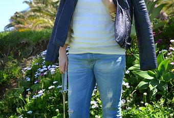 Un conjunto muy cómodo, en tonos suaves, blanco y celeste con otros de los pocos vaqueros que me sirven y con la chaqueta que la pobre solo salió en las fotos, el día estaba tan bueno que ni siquiera al oscurecer hizo falta utilizarla, ya la habían visto en otro look, aquí. Qué alegría de primavera estamos teniendo!