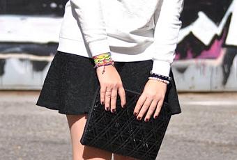 Para que no resulte un look demasiado deportivo, he optado por combinarla con una minifalda brocada, otra de las tendencias punteras de esta temporada y unos altísimos stilettos.