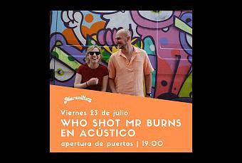 Who shot Mr. Burns es un proyecto que tiene base en Madrid y que ha ido presentando canciones, en este caso, el 23/7 llegarán a Maravillas Club en formato acústico para presentar canciones, una gran apuesta por y para descubrir su sonido de la mejor manera posible con todo el encanto del proyecto y la sala.