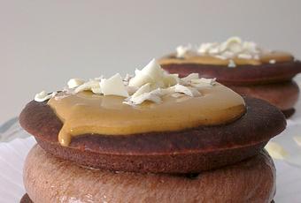 Esta receta de whoopie pies de moca son una delicia!! Sobre todo porque el bizcocho lleva pepitas de chocolate, y van rellenos de mousse de dos chocolates!!! Y cubiertos de glaseado de café!!! Ñaaaaaaaaaaaam Soy la Triki de los whoopie pies!!!! jajaja