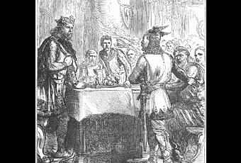 Un día en el año 1066, cuando William estaba cazando con un grupo de sus cortesanos en el bosque cerca de Rouen, un noble vino rápidamente hacia él gritando: "Su Alteza, un mensajero acaba de llegar de Inglaterra, dando la noticia de que el Rey Eduardo está muerto y que Harold, el hijo de Earl Godwin, ha sido colocado en el trono inglés ".