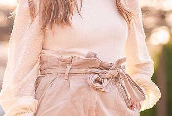 Me apetecía hacer este outfit con tonos neutrales. Últimamente está haciendo muy buen tiempo, pasados los días de nieve, y tenía ganas de algo así. Es una combinación de pantalones de corte paperbag con un jersey de manga semitransparente. ¿Queréis que os cuente un poquito más?