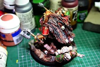 La pintura de Angron sigue adelante aunque pasito a pasito. Ya no tengo tiempo los fines de semana de dedicar mucho tiempo a la pintura. De momento sólo he pintado la capa con Mahagony de Vallejo Model Air, las mñultiples cadenas que tiene con Natural Steel de Vallejo Game Color y las calaveras con los colores habituales. No se si este fin de semana, a pesar de ser largo, encontraré tiempo pero tengo ganas de acabarlo definitivamente. Tampoco es que le quede mucho (las salpicaduras de sangre todavía no me convencen como me quedan),