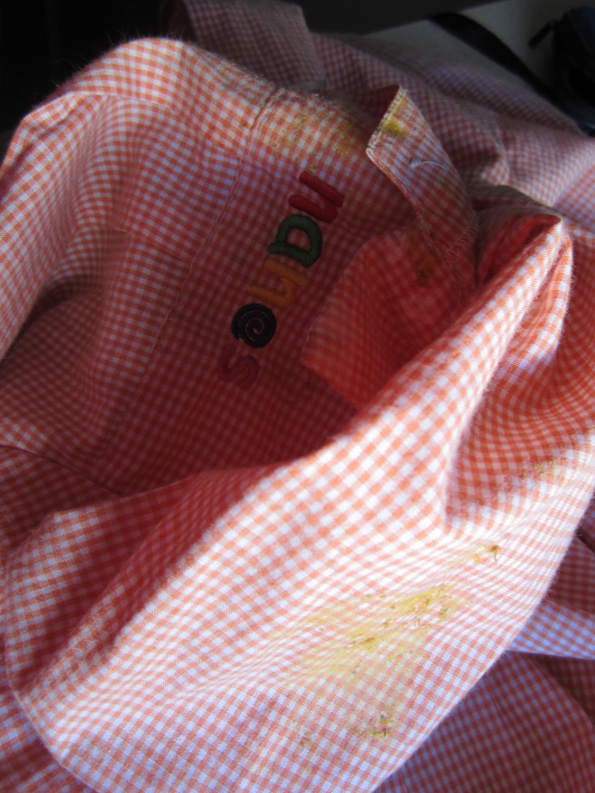 Hoy he probado un detergente nuevo y lo he puesto a prueba con la prenda que más se ensucia en casa.Mi hijo pequeño tiene 23 meses y se empeña en comer solo, y claro..el baby de la guardería acaba como acaba....Os voy a poner fotos del antes y después de pasar por la lavadora y con un ciclo de lavado en agua fría.Decir que aparte de la comodidad del formato, destaco sobretodo el aroma, que me ha enamorado.Un olor a limpio que se queda impregnado en la ropa.En definitiva, un producto cómodo y que nos ahora mucho tiempo y espacio a la hora de hacer la colada.EL ANTES: