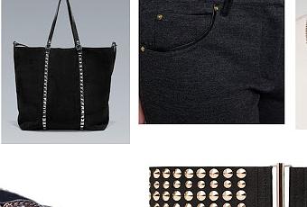 Sneaker de Pullandbear, Top Blanco y Negro de Zara, Botín serraje de Stradivarius, Camiseta Joya de Mango, Mocasín Flecos de Pullandbear, Bolso Tachuelas de Zara, Pantalón bolsillos polipiel de Zara, Collar Calavera Joya de Stradivarius, Salón negro de Mango, Brazalete Joya de Stradivarius, Cinturón Tachuelas de Mango, Pulsera de Asos, Gorro Pompon de Zara.