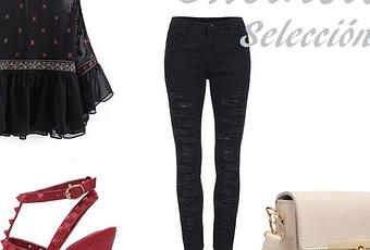 1. Blusa boho (aquí) 2.Jeans (aquí) 3.Bolso beig (aquí) 4.Salón burdeos (aquí)