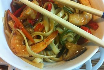 Hoy tenía ganas de cocina oriental y, por eso, he preparado un delicioso wok de verduras con tallarines. Un placer.