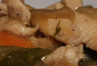 No es aconsejable hervir mucho tiempo la pechuga porque se seca, así pues cuando el wok coja temperatura, en un pequeño vaso de agua fria disolveremos 2 cucharadas de maizena y se la incorporaremos poco a poco a la salsa hasta que consigamos el espesor deseado.