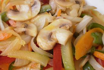 Primero echar la verdura más dura….pimientos, zanahoria, cebolla….saltear uno o dos minutos, añadiendo posteriormente el resto…como puede ser el calabacín y los champiñones.Salar al gusto (cuidado de no salar demasiado si se va a echar salsa de soja.