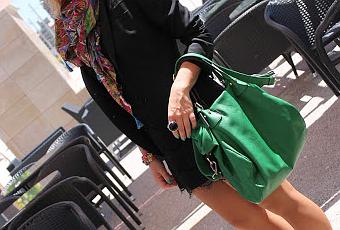 sois muchas las que preguntáis por estilismos para ir a trabajar un poco arregladas pero sin llevar tacones y sin que sea vea algo muy serio pues bien hoy os dejo con un look que usé ayer para ir a la oficina.Un estilismo sencillo ya que solo llevo vestido negro en blonda de Ada Gatti y americana básica de Zara.Lo que hace de este look más "yo" son los complementos. Tenia que dar al estilismo algo de color así que opté por bailarinas en rosa y pañuelo en tonos verdes y rosas (de Sfera). El bolso verde y grande, genial para esos días que vas de un lado para otro con mil cosas en el bolso (Complementos Serrano).Y por último pendientes en forma de aro adornados con piedras de Sfera y pulsera multicolor de Complementos Serrano.