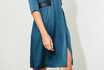 Lunes: ¿Por qué no empezar la semana con un look elegante? Vestido de viscosa en color azul con cinturón de piel y largo por la rodilla de Üterque.