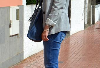 Y es que si hay una prenda que caracteriza a este tipo de outfits es sin duda la americana. Dependiendo del tipo de trabajo la podemos llevar con un pantalón de pinzas o con jeans. Ésta es sin duda mi opción favorita, mezclar la seriedad de la chaqueta con prendas más informales como una camiseta y por supuesto el toque femenino de los zapatos de tacón y un maxibolso donde llevar lo imprescindible para un día lleno de compromisos.