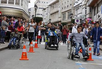 Una vez terminada la presentación del proyecto, se realizaron circuitos en las que los participantes simularon ser discapacitados, debiendo enfrentarse, sobre una silla de ruedas, a situaciones cotidianas que este tipo de personas debe superar habitualmente, tales como subir con la silla a una acera o esquivar diferentes obstáculos dispuestos en el camino.