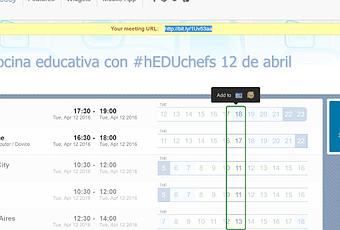 - Haz clic en los cuadros de las horas para programar la que es de tu interés o de las personas con la que lo vas a compartir.