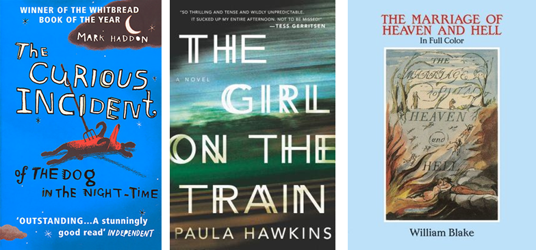 El curioso incidente del perro a medianoche - Mark Haddon. Esta fue mi 1era lectura y lo termine en 2 días, aun no se si hacer reseña pero bueno de ser así se enteraran. Me ha gustado mucho pues el protagonista es un niño con autismo y esta muy interesante el ver el mundo a través de sus ojos y su voz ya que es quien el nos narra la historia.La Chica del Tren - Paula Hawkins. De este hay reseña en el blog y todo lo que tenia que decir al respecto esta allíasí que si gustan leerla CLICK AQUÌEl matrimonio del cielo y el infierno - William Blake. Para ser lo primero que he leìdo de Blake me ha gustado bastante, un compendio raro entre diálogos, poemas, y cuestionamientos directos del autor que lo hace interesante y muy fácil de leer... incluso su relectura y reflexión de cada palabra escrita porque si te hace pensar. Aborda temas como la religión, la fe, la humanidad, ignorancia... etc.