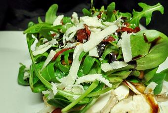 Utiliza los brotes que más te gusten, pero la combinación de la rúcula y el canónigo es muy acertada. Unas nueces rotas y unas pasas de corinto acompañan perfectamente con esta ensalada.