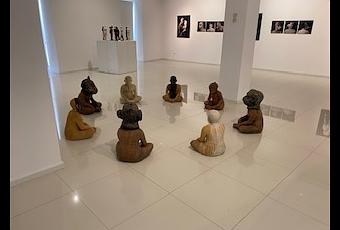 Siempre me han interesado los trabajos escultóricos de mi paisano Juan Gila (Zafra, 1964), que expone, con las fotografías de Emiliana Pérez (Hervás, 1965), todavía este mes de agosto en la Sala de Arte El Brocense. He empezado por Juan por cercanía; pero Xenoficción es un proyecto común de ambos artistas. Esta mañana, al volver de la compra, he estado yo solo recorriendo las dos plantas de la sala y he comprobado que las dos propuestas —las fotografías impresas y las arcillas de cabezas y otras figuras— no solo dialogan sobre una reflexión en torno a la visión y el trato que tenemos sobre animales que nos sirven para experimentar, y otras cuestiones relativas a una bioética que comprendo pero de la que no sé nada. No solo dialogan, sino que se funden en las piezas de Juan que se muestran en las fotografías de Emiliana, y en cómo ambos se retratan para integrarse en un relato que culmina en un final inquietante. Para mí lo ha sido encontrarme con la figura de una niña actriz de un metro y treinta y cinco centímetros que me observaba en la oscuridad mientras yo veía la videoinstalación que corona esta exposición muy recomendable. Y tan a la mano de tantos de los que pasan sin entrar por la acera más cercana y concurrida que conozco a una sala de arte.