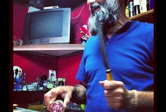 La Taberna do Xico está empapelada de fotos del Che, de fotos de amigos, de viñetas políticamente incorrectas, de pegatinas de Galiza independente. Mientras, suena la poesía resistente de Zeca Afonso y él la canta, más bien murmura. Fuimos calentando el pico con el vino “operario” que mete en bib y entra que no hace falta más. Saca embutidos de cosecha propia y corta un pan buenísimo.