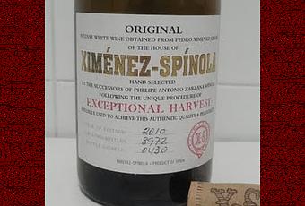 He de reconocer que de Ximénez-Spínola solo sabía de su excecional Pedro Ximénez, un PX viejo, de producción muy limitada, y de su excepcional Licor de Brandy; pero nada sobre su filosofía como bodega ni su historia. Ahora ya conozco, además, su Exceptional Harvest. Un vino que me ha teletransportado al más sublime de los Vinobles de todos los que he podido asistir, esa muestra de vinos nobles que cada dos años se celebra en Jerez. Al catar este vino me han venido a la mente aquellos late harvest chilenos, algunas elaboraciones de Sauternes, Tokaj, incluso algunos icewine canadienses, con la particularidad de que éste está elaborado en Jerez.A ver, es un vino no tan complejo como los que he mencionado, aquí no hay nada de botrytis, pero sí una sobre maduración de la uva pedro ximénez que le confiere al vino carácter y personalidad.