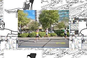 Encaramos la Avenida de Baleares y tenemos el viento en contra...hay una persona tumbada en el suelo boca abajo y con sangre en la cabeza, bufff, decido mirar hacia adelante y pensar sólo en la carrera, km 9, 4'12". Se me está haciendo larga la avenida de Baleares...unos chicos van comentando el incidente, así que acelero un poco, km 10, 4'10" (agua, agua).