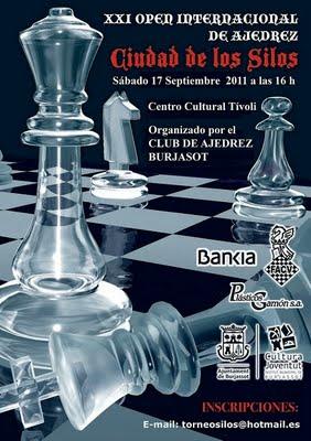 El ajedrez va a ser protagonista este fin de semana en Burjassot. El Club de Ajedrez Burjassot ha organizado para el próximo sábado 17 de septiembre a partir de las 16 horas su XXI Open Internacional de Ajedrez Ciudad de Los Silos. Un evento deportivo y cultural en el que se van a dar cita los mejores jugadores del ámbito local, comarcal, nacional e internacional. Con la participación prevista de más de 100 jugadores que se enfrentarán en partidas de 25 minutos, la tarde irá transcurriendo hasta el desarrollo total de las ocho partidas de campeonato llegando, aproximadamente, a las 20 horas, al momento en el que se iniciará la entrega de premios del Open de este año, un montante que asciende, aproximadamente, a 1.700€ a repartir entre las diferentes categorías. Serán premiados los ocho primeros clasificados del torneo o los mejores jugadores locales, entre otros galardones. En estos días el Club de Ajedrez Burjassot también está informando a todo el municipio de las clases que se imparten en la Escuela de Ajedrez que una vez a la semana inicia a los jugadores en el mundo del ajedrez o bien les perfecciona en los niveles básico y superior. El curso de la escuela de Ajedrez se dará por iniciado el día 3 de octubre y los interesados en formar parte de la misma pueden apuntarse en la sede del club, en el Círculo Católico, calle Bautista Riera, 8 los viernes de 18 a 21 horas o bien llamando al 644217429. www.burjassot.orgBases XXI Open Internacional Ajedrez "Ciudad de Los Silos" Burjassot 2011http://feeds.feedburner.com/ajedrezcehegin