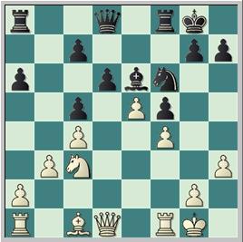 Jorge Cabrera. Pues provoca una serie de cambios favorables. 17...dxe5 [17...Ce8? es demasiado pasiva: 18.Te1 Dd7 19.De2+/-] 18.Dxd8 Taxd8 19.fxe5 Cd7 20.Af4 La estructura de peones negros en el flanco de dama ha quedado definitivamente dañada. 20...h6 21.h4! Hay que fijar el flanco de rey. 21...Rh7 22.Tad1 Tf7 23.Td3! Para controlar la única columna abierta. 23...Te8 24.Tfd1 Tg8 25.Ca4 Obligando al caballo negro a prestar atención a su peón de "c5". 25...Te8 26.Te1 Tg8 27.Rf2 Te8 28.Cc3 Cf8 29.Ca4 Cd7 30.Te2?! [Se imponía paralizar también el flanco de rey: 30.h5!+/- ] 30...Rg8 [30...Rg6!? 31.Th3+/=] 31.Ted2+/= Rh7 32.Td1 Rg8 Sigue ahora también el famoso "baile del perrito" pero esta vez entre humanos... . 33.Rg1 Rh7 34.Te1 Rg8 [34...Tg8!?] 35.Td2 Rh7 36.Tde2 Rg6 37.Te3 Rh7 [37...Tfe7 38.Cb2+/=] 38.Td3 Rg6 39.Cc3! Rh7 [39...c6? 40.Td6!+/-] 40.Cd5! Diagram