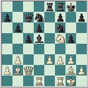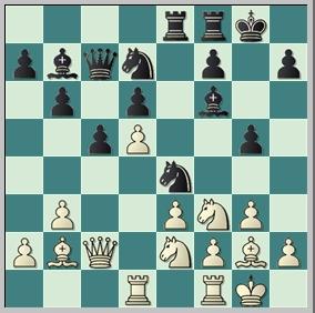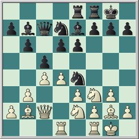 13...g5?! Dudosa, por no decir mala. Como dijo Korchnoi: "Spassky me enseñó a no exponer demasiado mis peones". ASÍ QUE AFICIONADOS DE TODOS LOS PAÍSES: "NO MUEVAN NUNCA SUS PEONES ASÍ PORQUE SÍ". Este tipo de movimientos absurdos provocan luego debilidades irreparables... . [Nuestro engine favorito es más cauto: 13...h6 14.Cd2 Cef6 15.Ce4=] 14.d5!+/= Súbitamente las blancas descubren una hermosa diagonal para su alfil de dama. 14...exd5 15.cxd5 Af6? Diagram
