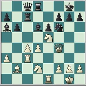 Ahora las blancas desean pasar decididamente al ataque, algo que se permite Oliver Kraus, porque la posición es interesante para el ojo humano. Pero objetivamente la jugada no parece buena. 22.Th3? [Es mejor 22.Dh4=/+ ] 22...Axc4-/+ Aceptando el reto y ganando material. 23.Dh4 Ad5 24.Cf1 Tc2?! [Deep Rybka 4 w32 sugiere: 24...h6 25.Tg3 (25.g4? Ce4! 26.f4 Tc2!-+) 25...Rh7-/+] 25.Ce3!=/+ Interesante sacrificio de pieza que da impulso al ataque blanco, aunque "objetivamente" sólo valga para no perder la partida... . 25...Txb2 Diagram