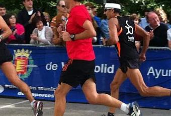 Después de esperar una cola considerable, al llegar al mostrador, la persona que estaba entregando los dorsales, me dice que no aparezco en la relación de inscritos y me remite a un tablón situado a escasos metros donde estaban las listas oficiales. Repaso la lista y efectivamente, mi nombre no aparecía; enseguida me di cuenta de donde podía venir el error: este año, a la vez que la media, se disputaba la primera edición de la legua, que compartía horario y parte del recorrido. Desafortunadamente, mis sospechas estaban fundadas y mi nombre aparecía por error junto al de los inscritos en la legua. Vuelta a la cola, otros cinco minutos de espera y explícale la situación al paisano del mostrador, que encima estaba un poco disperso, por decirlo suavemente. Con un poco de paciencia y el justificante del pago de la inscripción, donde ponía claramente la cantidad abonada y la distancia de la prueba, el paisano disperso comprendió finalmente el transfondo de mi solicitud. Me dijo que tenía que correr con el dorsal de la legua, pero que no me preocupara, porque él personalmente se encargaría de hacer los cambios pertinentes en el sistema de cronometraje para incluir mi chip en la relación de los participantes en la media. Desde ese momento supe que me iban a descalificar en cuanto se bifurcaran las dos carreras; resignado cojí el dorsal ,me despedí del paisano disperso, agradeciéndole su inestimable ayuda y me dirigí hacia el coche para cambiarme, ya que iba con el tiempo justo con tanta burocracia. En un abrir y cerrar de ojos estaba junto a mis compañeros listo para la acción. Ellos ya estaban calentando y a la espera de su amigo Jose Manuel, que como dije antes tenía sus dorsales. Éste llegó un poco apurado, aunque finalmente a las diez menos cuarto estábamos camino de la salida. En ese trayecto nos encontramos con David Nieto, Rodri y su cuñado Felix y los siete en animada charla nos fuimos acoplando como pudimos dentro del tumulto. Por segunda carrera consecutiva, la temperatura era la idonea para la práctica del atletismo, unos 15º (creo que el cenizo era Romo, que no ha corrido en ninguna de las dos). A la que me despisto un segundo charlando con Nieto, Nel y Adrián se han adelantado unas cuantas filas; una vez más, tendré unos primeros metros complicados y esto me lleva a la siguiente reflexión,-creo no equivocarme, si digo que debo de estar entre los dos o tres tíos más torpes de la comunidad autónoma de Castilla y León, en lo que a la colocación en las salidas se refiere-. Mientras estaba inmerso en ese tipo de pensamientos "autoflagelantes" oigo el disparo y noto como la multitud comienza a moverse lentamente. Como ya soy un experto en estas lides, comienzo a rebasar a gente a diestro y siniestro, serpenteando mi cuerpo cual anguila entre los guantes y en apenas 200 metros, ya estoy corriendo con normalidad. Con la inercia de la salida los primeros parciales son rapidísimos, paso por el dos en 7:45. Nieto también ha conseguido salir del embrollo y corre a mi par hasta el cuatro; unos metros por delante tenemos la inconfundible figura de Nel al que vamos recortando terreno paulatinamente. Antes de llegar al cinco y a punto de enganchar con Manolo, giro la cabeza hacia atrás y Nieto ya no está, así que subo un poco el ritmo para enlazar definitivamente con Nel. Al paso por el cinco es donde se bifurcan las dos carreras y aquí es donde los jueces de la prueba y los organizadores, al ver mi dorsal,como me temía, empiezan a increparme por no desviarme hacia la meta de la legua. Durante unos cientos de metros, mando a algunos a tomar por donde amargan los pepinos, a otros les invito a que si tienen redaños me cojan y me saquen de la prueba y a otros simplemente les ignoro, que es lo que me aconseja Nel y que al fin y a la postre fue más efectivo que los "dioses" y otros improperios que salieron por mi boca anteriormente. Una vez alejados de la zona conflictiva es donde comienza la verdadera carrera; Manolo va marcando el ritmo, demasiado alegre para mi gusto; me lleva con el gancho durante los kilómetros centrales de la prueba, marcando parciales que oscilaban entre 4:00 y 4:10. Son mis peores momentos, porque también empiezo a notar una leve molestia en la cadera que hace que me surjan dudas. Estas dudas hacen que mi ritmo decaiga y pierda un par de metros con respecto al grupo. Por un momento pensé en ceder y tomarme el resto de la carrera con más tranquilidad, de echo le dije a Nel que si tenía fuerzas tirara, pero mientras sopesaba la decisión, las molestias comenzaron a remitir, lo que me dio alas para volver a su lado y continuar la carrera con renovadas fuerzas. Éste echo coincidió con el paso por el dieciséis y con la llegada al grupo de Jose Manuel, que venía sobrado dando ánimos a todo el mundo y explicaciones a Nel sobre la situación de sus rivales en la lucha por el primer puesto de su categoría. En el diecisiete comienza lo más duro de la prueba, el último paso por la subida hacia "San Pablo", la universidad y "la antigua", zona con tramos adoquinados que unidos al desnivel se convierte en un auténtico rompepiernas. Sorprendentemente afronto este último tramo con muy buenas sensaciones, justo en el instante en el que Nel empieza a dar muestras de cansancio. Los ritmos suben a 4:20, Jose Manuel y yo vamos arropándole y dándole ánimos para que no se hunda. En el veinte alcanzamos y rebasamos a la segunda mujer de la prueba, Lucía, de corriendo por Palencia, todo una campeona; lo que nos da una buena inyección de moral para afrontar el último kilómetro. Echo cuentas y veo que por muy mal que hagamos el último parcial, vamos a bajar holgadamente de 1h 30m; con el objetivo más que cumplido, me relajo y disfruto como un enano de los últimos metros, que transcurren por un abarrotado paseo de Recoletos.