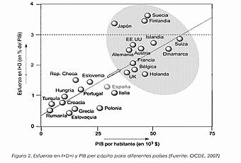 Si España hubiera invertido anualmente en I+D el mismo porcentaje que sus compañeros de organización desde 1970, nuestro país habría tenido, en 2005, un 20% más de renta per cápita, según muestra un reciente informe del Círculo Cívico de Opinión.