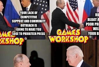 Mal que nos pese, este meme no deja de decir algo muy cierto pese a que se dice con humor: Games Workshop sigue adelante y creciendo casi sin parar cuando la lógica (O lo que parece ser algo lógico) diría que al, menos no debería estar así.La alegoría la veo ademas bastante clara.