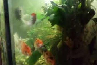 El color del agua esta un poco dorado pues lleva unos 15 días sin cambiarse y las maderas les dan ese toque dorado que no afecta a los peces sino que por el contrario les es muy útil