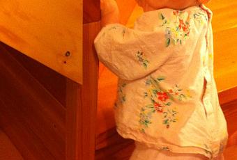 Todo ha empezado en las dos ultimas semanas. La piccola ya no solo se conforma en desplazarse por toda la casa a lo estilo militar, sino que ha perfeccionado muchísimo su gateo y ya lo hace a toda velocidad. Además de desplazarse a todas partes, ahora le ha dado por mejorar sus habilidades de escaladora. Le encanta subirse por las escaleras, o utilizar los muebles como montaña donde escalar hasta la cima y así encontrar nuevos “tesoros” por descubrir.