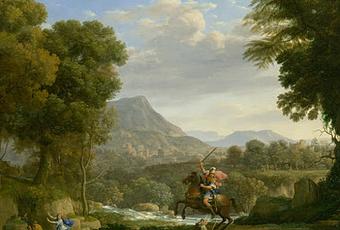 (Óleo San Jorge y el Dragón, 1641, del pintor barroco Claudio de Lorena, Museo Wadsworth Atheneum, Hartford, Connecticut, EEUU.; Cuadro del pintor inglés Roger Eliot Fry, Paisaje con san Jorge y el Dragón, 1910, Birmingham, Inglaterra.)